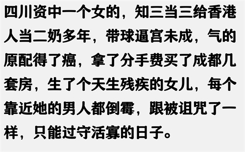 小时候,我家对面的邻居一家和睦相处,媳妇与公婆同住,育有一子,媳妇对公婆十分孝顺。然而,丈夫不满足现状,在外沾花惹草,为了迎娶小三,他不断打骂妻子,逼迫妻子离开,甚至不要儿子。最终,夫妻离婚,妻子带着儿子离去。丈夫如愿与小三同居,却未料一年后患上癌症,小三卷款潜逃。病痛折磨了他半年多,最终他悲惨地死去。我常以此事告诫我的丈夫,这是赤裸裸的现世报。