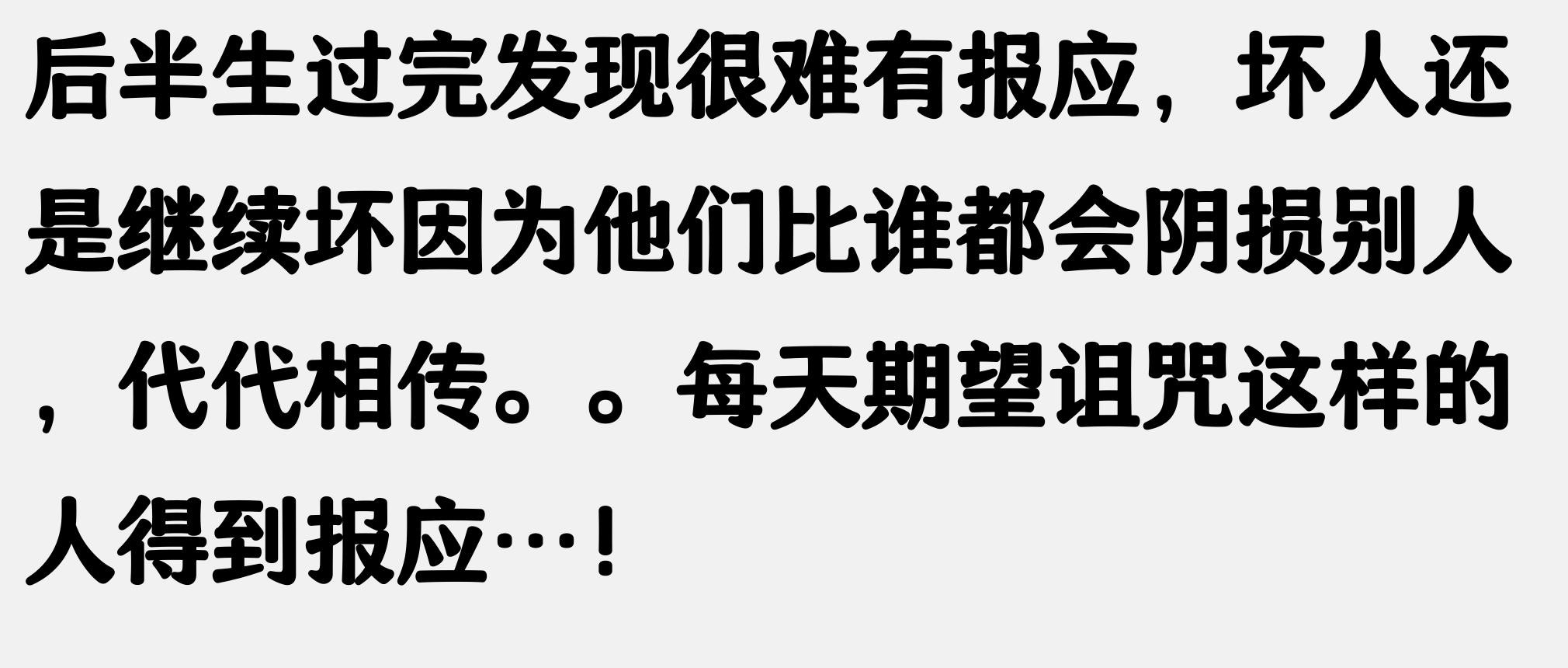 举头三尺有神明,善恶终有报,两年前我们小区一个男在小区虐流浪猫,不到一个月他儿子上学路上被车撞死了,没多久他检查肺癌晚期,孩子爷爷出门遛弯莫名其妙被大风刮飞过来的铁皮割了喉,当成死亡,小区人都说这是报应,活该。圣经上说:人生在世善待万物生灵是基本素养,总是以恶的一面对待人或者小动物,是要受到惩罚,还是做个善良的人吧。