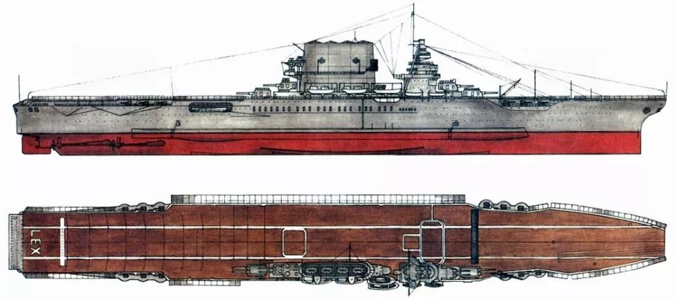 列克星敦号航空母舰(CV2)是美国继兰利号后第二艘航空母舰,也是美国海军第四艘以列克星敦命名的战舰(美国海军二战时期还有一艘以列克星敦号命名的埃塞克斯级航母,以后再详细叙述)。列克星敦号航母原本是一艘战列巡洋舰,由于1922年当时的各海军强国达成的《华盛顿海军条约》的限制,才改装成了航母。列克星敦号航母1921年1月8日作为战列巡洋舰开工,1925年10月3日下水,1927年12月14日正式服役,服役时以40000余吨的满载排水量在世界各国海军中冠绝全球!