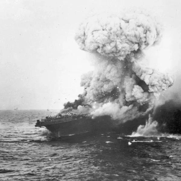 1942年5月7日,从列克星敦号上起飞的一架巡逻机发现了日军航母编队,弗莱彻少将立即命令列克星敦号和“约克城”号航母去攻击日军舰队。上午10时,由24架鱼雷机、36架轰炸机、16架战斗机组成的美军机群扑向日军舰队。1小时后,美军机群飞临日军舰队上空。日军舰队正排着环形队伍驶往珊瑚海,排在中间的是祥凤号航空母舰。美军第二鱼雷机中队的13架鱼雷机对“祥凤” 号进行集中攻击,共投射了16枚鱼雷,有3枚命中目标。美军第五鱼雷机中队也来投射了鱼雷,有4枚命中。美军的轰炸机也加入了攻击队伍,13枚炸弹命中目标。列克星顿号与“约克城”号击沉了祥凤号,稍后两艘航母上的战斗机又拦截了“翔鹤”号及“瑞鹤”号的机队,机队共有12架俯冲轰炸机及15架鱼雷轰炸机,美军共击落9架。