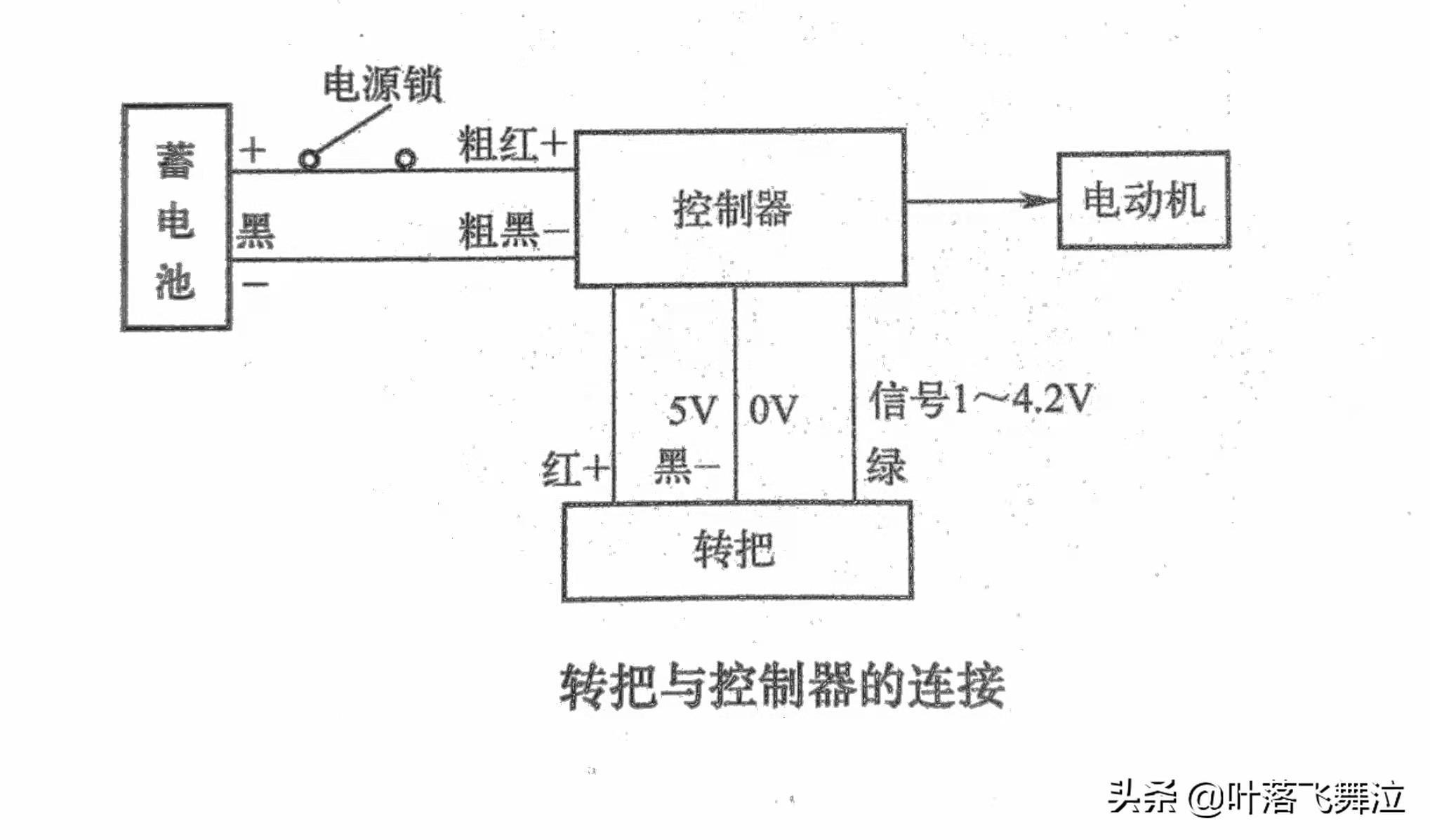 5V电源线与信号线短接,打开电源后电动机应高速运转,否则说明转把损坏