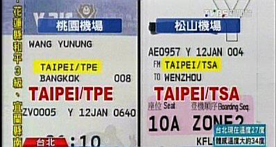 A:大多数是指桃园机场。由于世界各国与台北之间的航线大部分在此起降,桃园机场使用台北的机场代码(TPE),各国航空公司的航点标示为“台北机场”或“台北桃园机场”(Taipei-Taoyuan)。若是松山机场一般都会直接注明是松山机场。