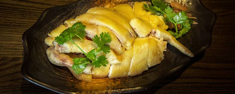 白切鸡:先用开水将鸡煮熟,用姜葱蒜熬成的酱汁浇于煮好的白鸡上面,口感舒脆。