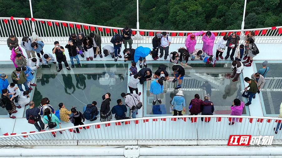 红网时刻新闻9月1日讯(记者 何超 通讯员 罗克文)10月1日,位于湖南张家界大峡谷风景区的高空峡谷玻璃桥以“凌空漫步,如履薄冰”的惊险体验,成为中秋、国庆长假旅游的“网红”景点,吸引各地游客纷至沓来。张家界大峡谷玻璃桥全长430米,桥身距离谷底垂直落差300米,大桥表面由99块透明玻璃铺设而成。