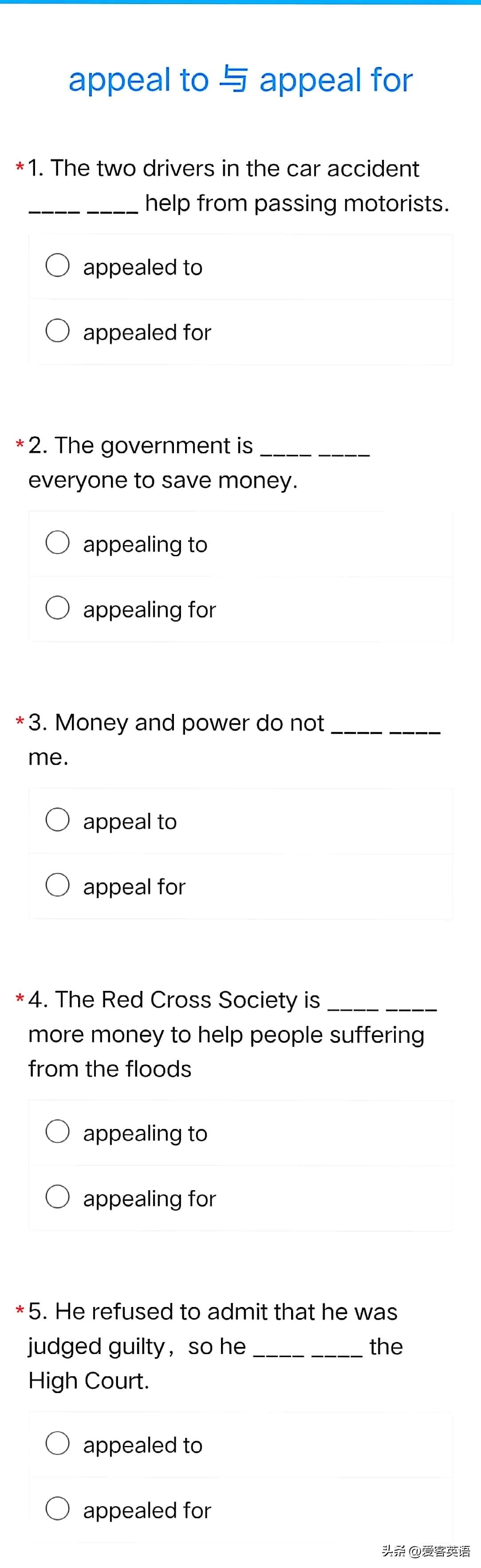 英语辨析 8:appeal to 与 appeal for