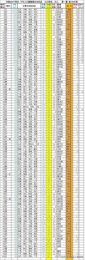②逢春文化叶氏历史研究专家叶钦雄老师的《百家姓前600姓氏 千年人口数据排名对比表 》。