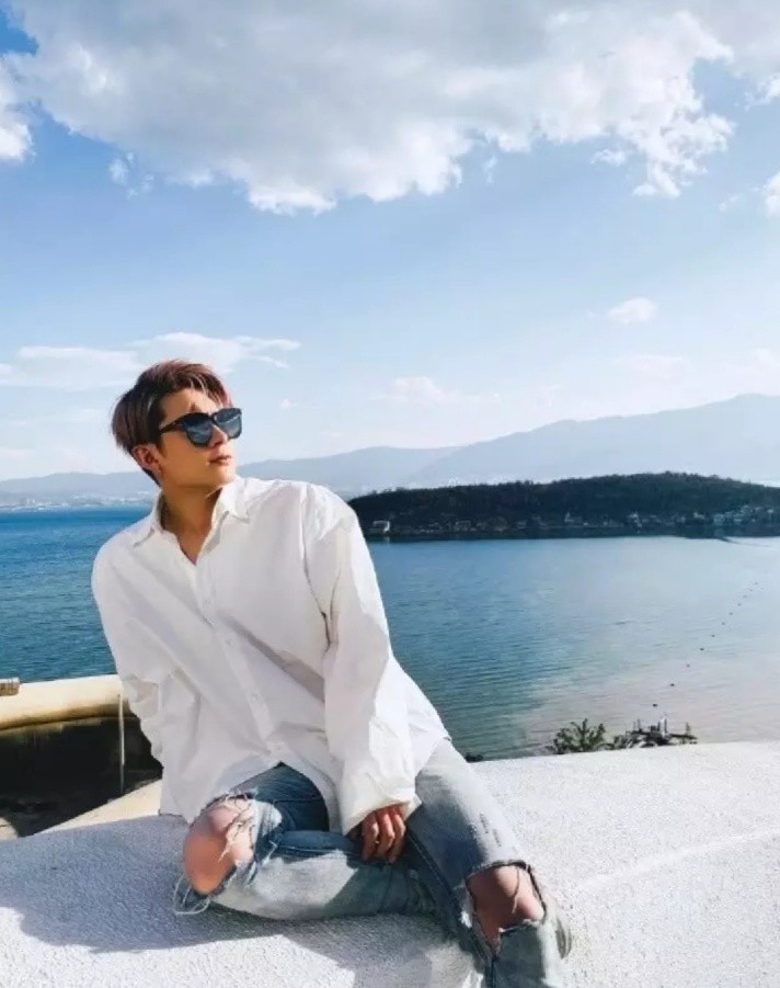 而林雨桐的新男友则身穿着宽松的白色衬衫,下半身搭配破洞牛仔裤,脸上戴着一副墨镜,看起来非常高大威猛又帅气。这样的男朋友陪伴在身边,出游也特别有安全感呢。
