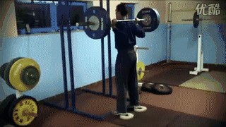 然后进行负重训练,杠铃转体、半蹲、全蹲等等。
