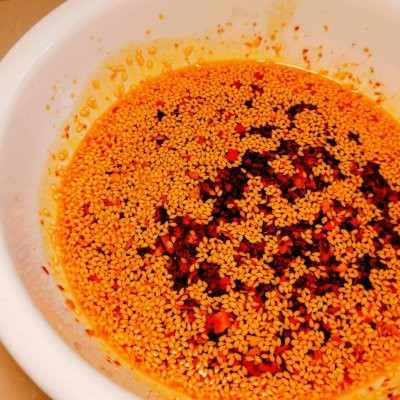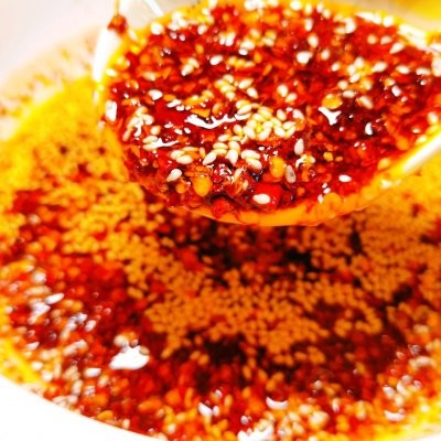1.炸香料时注意小火慢炸,不然易炸糊,后续油内菜渣多 2.炸辣椒面时注意分两次,第一次油温八成热,太热容易把辣椒面炸糊,第二次十成热再次激发香味,辣椒油更好吃哦。