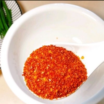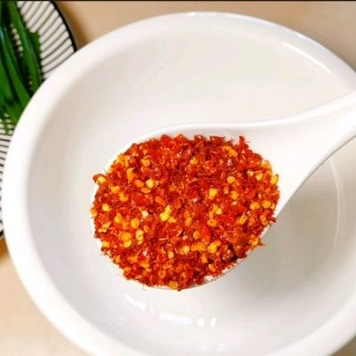5、准备一个干净的碗或盆,放入一勺粗辣椒粉。