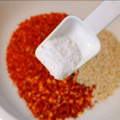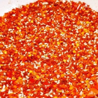 9、粗辣椒粉 细辣椒粉 芝麻 盐,比例大概是10:10:8:0.5