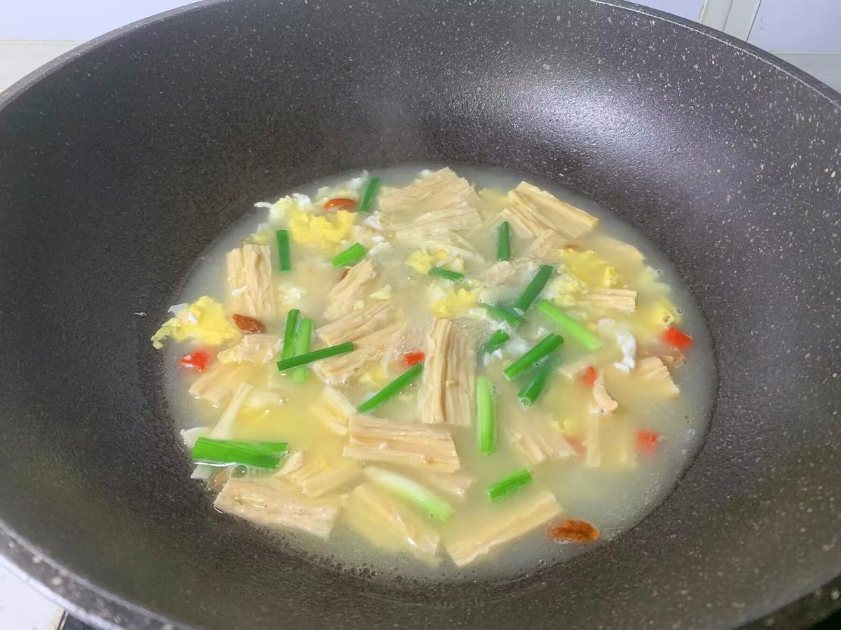 “这个方法更加快捷,但同样有效。将清水烧开后,放入腐竹,用中小火煮上三分钟左右即可。”