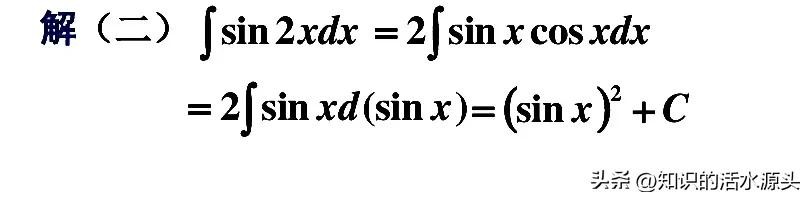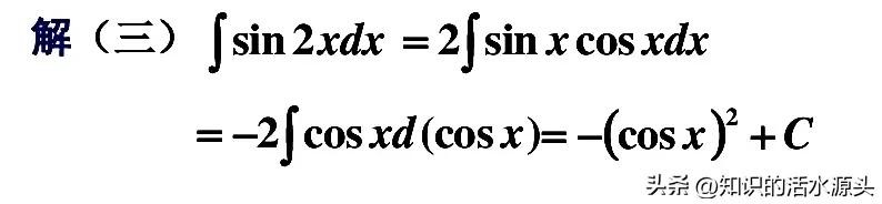 第三种解法,同第二种解法一样,先转换sin2x=2sinx cosx,然后再进行求解,进行凑微分即可求得答案。凑(sinx)dx=-d(cosx)