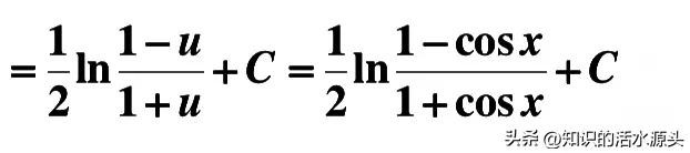 到这一步就很简单了,我们另u=cosx,将式子裂项1/(1-u²)=1/2×[1/(1-u)+1/(1+u)],裂项后再进行配平即可。