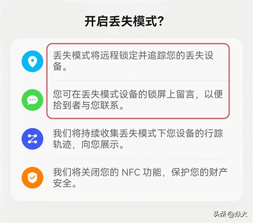 咱们来逐个说明,比如像这个“丢失模式”,这个功能可以远程锁定,并且追踪我们丢失的手机,同时呢,在丢失的手机上面可以留言,这样捡到的人就可以与你联系了。