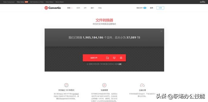 免费用户最大可以上传100M以内的文件,一次可以上传2个文件批量进行转换。