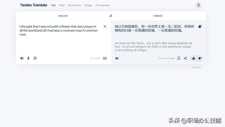 一个来自俄罗斯的在线翻译工具,支持上百种语言之间的相互翻译,有文本翻译、文档翻译、图片翻译、网站翻译的功能可以使用,翻译速度快,翻译的也挺准确的。