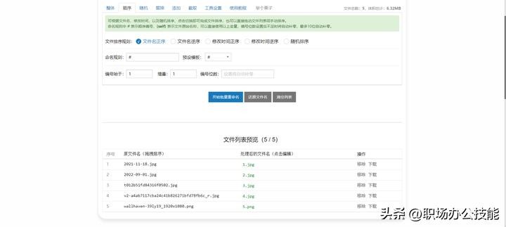 上传文件之后,选择一下重命名模式,自己再设置一些规则就好了,下面还有重命名后的文件名预览,最后将文件打包下载到本地就可以使用了。