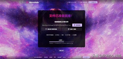 上传文件之后,会生成分享链接和二维码,将链接或者二维码发送给对方,打开就可以下载文件了。
