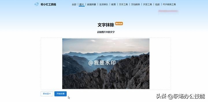 工具很多,都挺实用的,比如文字抹除功能就很好用,上传图片之后一键就能抹除图片中的文字,都不用自己选择文件,处理效果也很好,用来去除图片水印很不错。