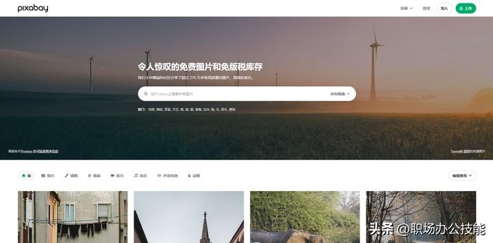 一个资源丰富的无版权素材网站,里面包含了图片、视频、插画、矢量图、GIF、音乐、音效等素材,不需要注册登录就能免费下载,并且还可以商用。