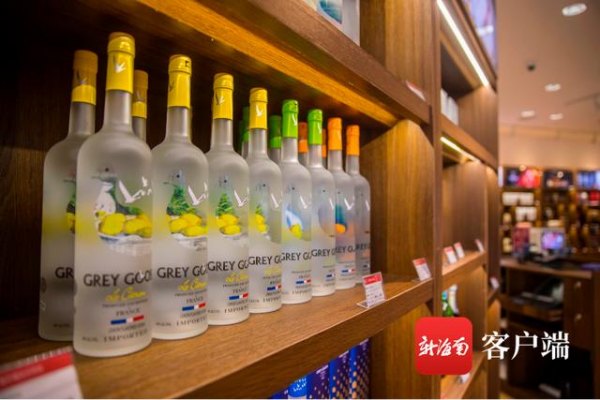 海口日月广场免税店,售卖的免税酒水琳琅满目。