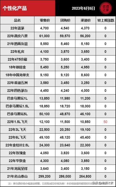 个性化产品中:22年1.5L飞天,走进澳洲、非洲375,走进四国750价格上涨;