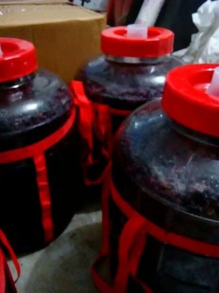 这里土法生产的葡萄酒有着润滑绵甜、清新纯正、口感醇香。农家把摘下来的葡萄挑选、分拣、去梗、洗干净沥水后就要放到消过毒的大缸里进行捣烂、搅拌,按比例撒上白糖和冰糖,进行密封发酵,然后过滤、二次过滤贮藏、灌装、销售,以保证葡萄酒口味芳香、细腻的品质。