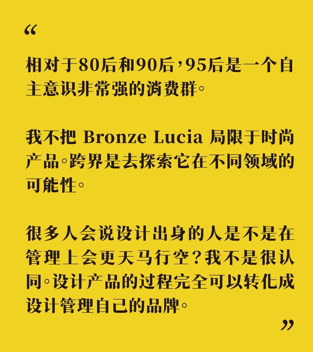 » 关于本期对谈更多文字内容,请点击链接:音频实录 | Bronze Lucia 主理人陆玺娅:我们只做年轻人喜欢和关注的产品!