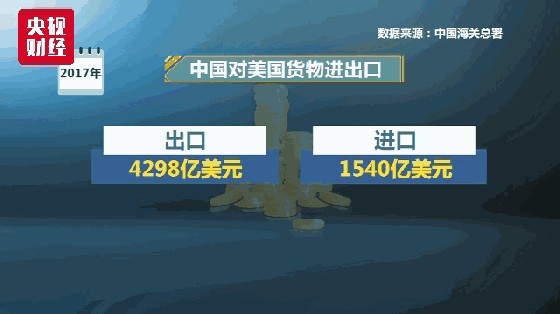 央视财经《经济信息联播》栏目视频 贸易是两国企业、两国消费者在自愿的基础上做出选择的结果。有时候,一个国家要买,另外一个国家要卖,所以出现顺差逆差。根据中国海关总署统计数据:2017年,中国对美国货物出口为4298亿美元,货物进口为1539亿美元;货物贸易顺差为2758亿美元。
