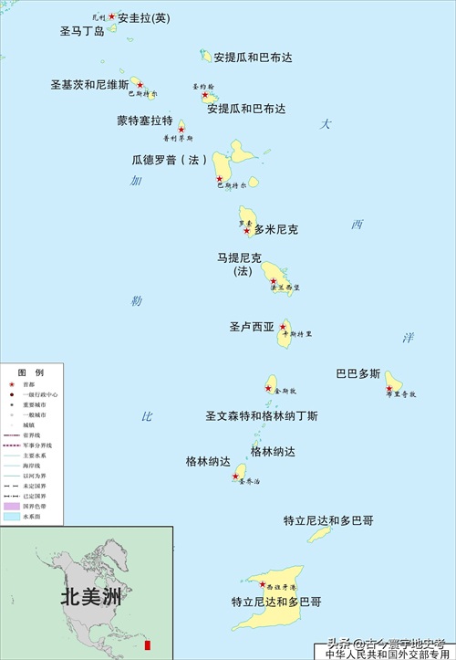 格林纳达、圣基茨和尼维斯、安提瓜和巴布达、多米尼克、圣卢西亚、巴巴多斯、圣文森特和格林纳思丁