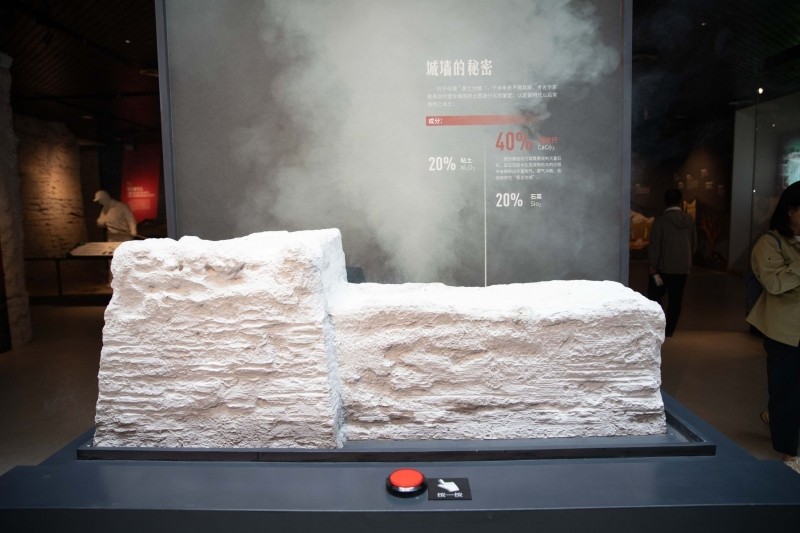 统万城遗址博物馆中的模拟筑城装置可以喷出烟雾。