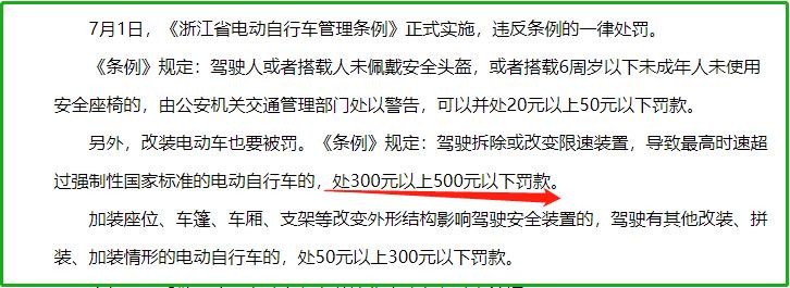 2、 遇到查车会被处罚,新国标电动车一旦时速过快,就属于超标车,而私自解除限速,属于违规改装电动车,一旦被查,会面临相应处罚,比如在浙江,骑行改装时速的电动车,会处300元以上500元以下罚款。
