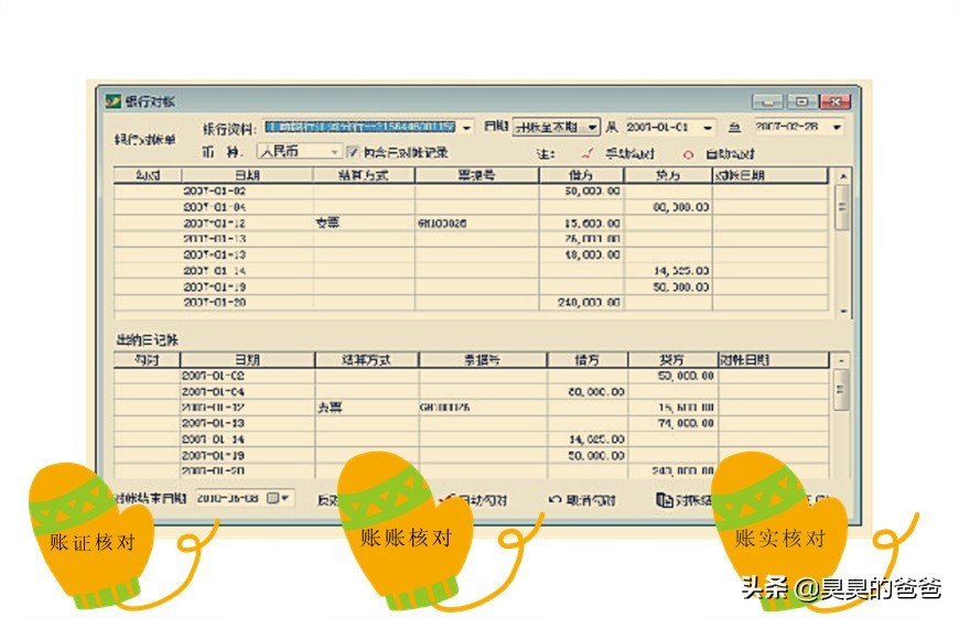 (1)银行存款日记账账面余额与开户银行对账单相核对;