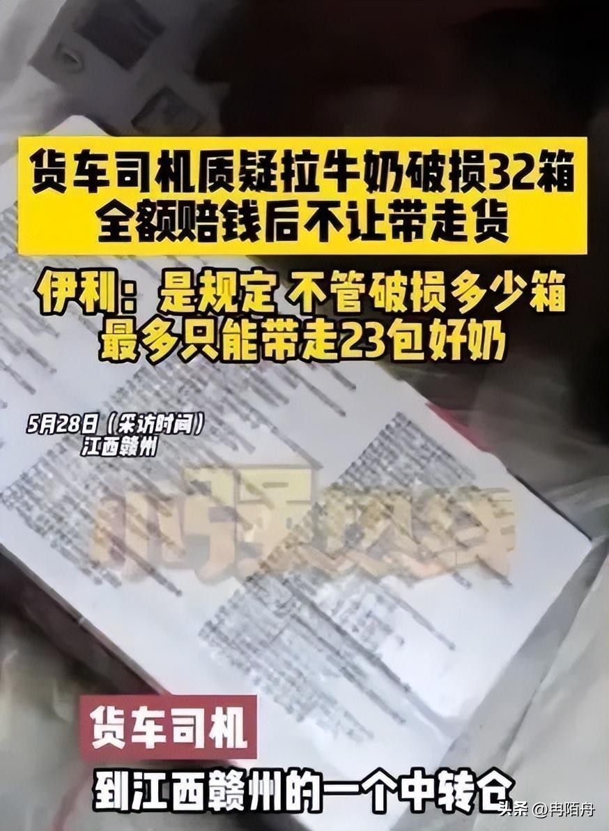 伊利牛奶再爆丑闻,卸货三天后索要赔偿,威胁司机:你不认也得认