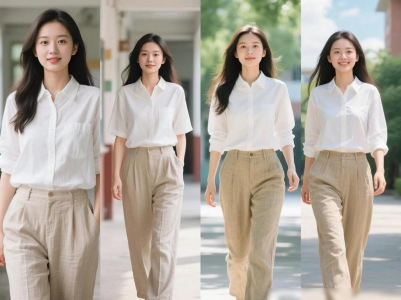 在选择衬衫和裤子时,还应该根据自己的身材和肤色来选择款式和颜色, 简约的设计和柔和的颜色更加适合普通女性展现出自然美。