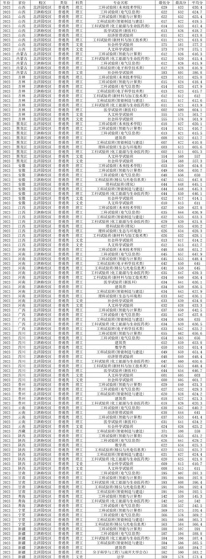 四、天津大学2023年在传统高考省份各专业录取分数线