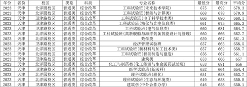 一、天津大学2023年在天津各专业录取分数线