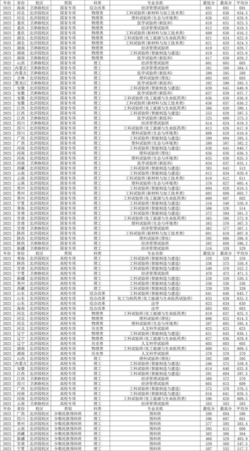 五、天津大学2023年高校专项、国家专项、预科在各省录取分数线