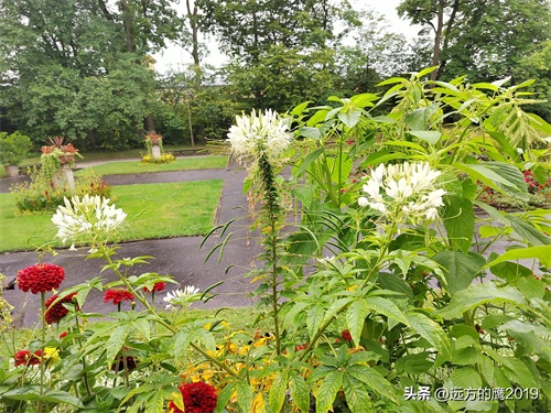 这是在华沙肖邦公园拍的白色醉蝶花,这里的醉蝶花是和其他花草植物搭配一起栽种的。