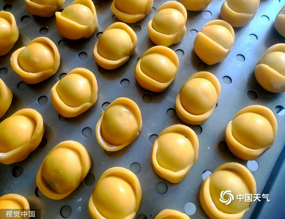 图为柿子造型汤圆,象征柿柿如意。(签约供稿人/视觉中国/版权图片 来源视觉中国)