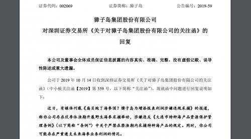 獐子岛回复深交所有关“涸泽而渔、透支收益”情形。事发缘由为:有媒体刊载《扇贝跑了海参顶?獐子岛为增添报表利润涉嫌违规采捕》的报道,称獐子岛存在伏季休渔期开展野生海参采捕举动,涉嫌违反《大连市特种海产品资源保护管理条例》中关于严禁在禁渔期内采捕特种海产品的规定。