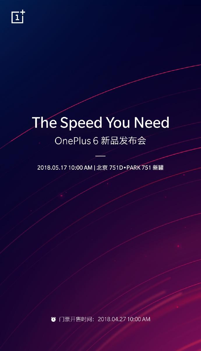 今天,一加手机官方正式宣布将于5月17日在北京751D·PARK发布全新旗舰一加6。发布会的门票将于4月27日上午10点开售。