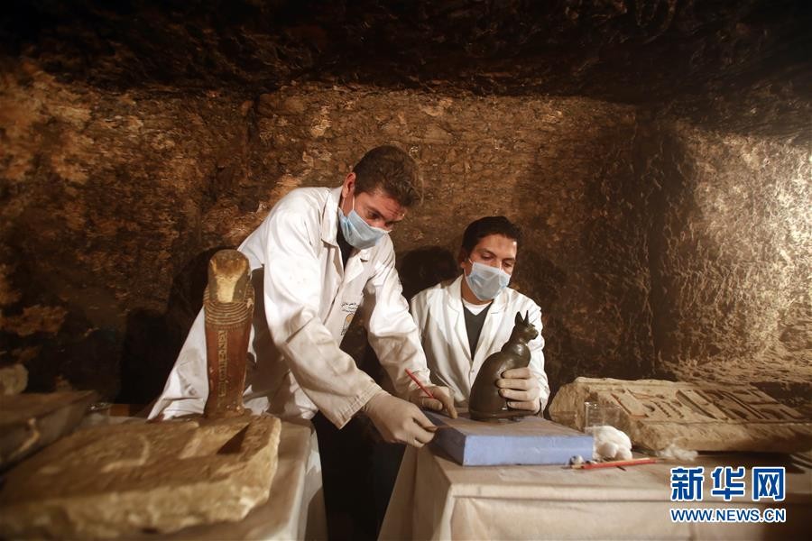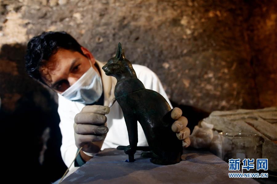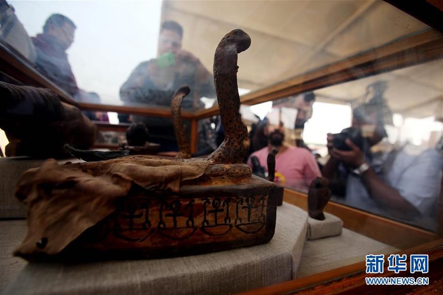 这是11月10日在埃及吉萨省塞加拉拍摄的出土文物。 新华社发(艾哈迈德·戈马摄)