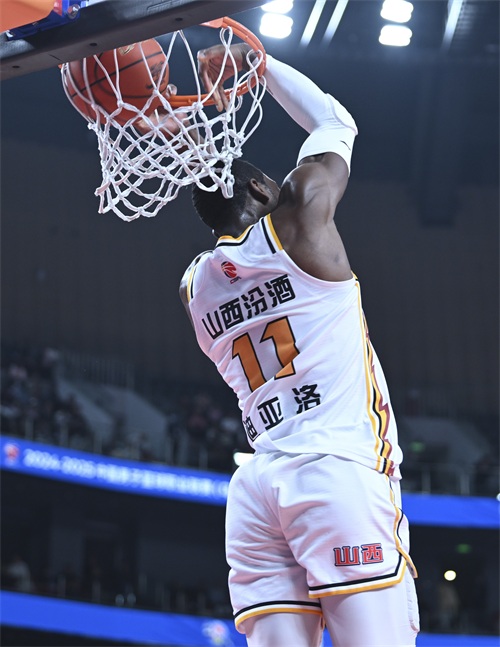 12月22日,山西汾酒队球员迪亚洛在比赛中扣篮。新华社记者 胡虎虎 摄