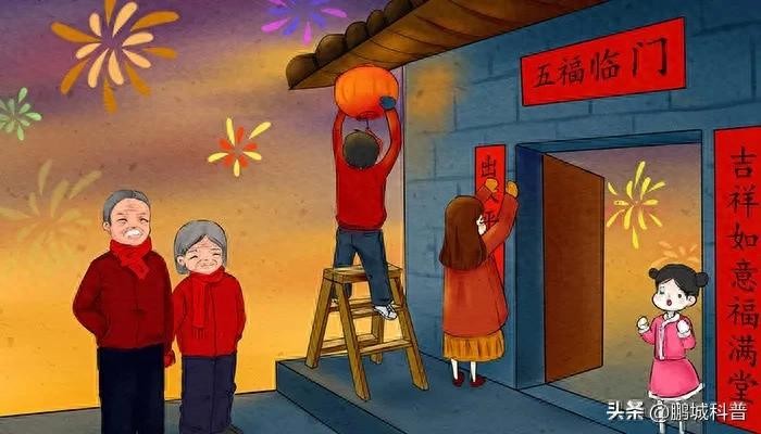 这个贴春联其实是有许多讲究的,春联呀,有上联和下联之分,还有横批,三者是缺一不可的。首先贴春联最忌讳的就是把上下联的顺序贴反,那如何才能确定他们的顺序呢?看最后一个字的读音,上联的读音是仄声,就是三声或四声,比如吉星高照加富有,那这个尾字有,就是三声。下联的读音是平声,也就是一声和二声,比如大地回春人安康,这个尾字康啊,就是一声。这个和古人的书写习惯有关的,右为上联,左为下联,再把横批贴于正中的最上方,这样才是贴对了对联。