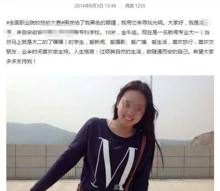 看她几年前的动态,很阳光。而今也不过是个二十出头的小姑娘,刚走出校门,踏上社会,不懂社会人情,作为广播员还不会喜怒不行于色。面对车祸现场,事不关己,高高挂起。一觉醒来,这个世界对于她来说已经不是那个熟悉的世界了。网上骂声铺天盖地,邻居朋友指指点点。第一份工作向她关上了门,估计很难再有一个公司再向她打开。也许能在凌晨哭泣中睡去,再在可怕的噩梦中醒来,打自己一个耳光后,发现这可怕的现实不是梦,不知道会是什么样的体验,会不会再引发另一场悲剧。但总归会在她人生当中留下个沉痛的教训,甚至这个社会不会给她一次再来的机会,严重点会毁了她。