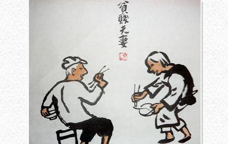 说是很多年以前,那时还没有机械化,人们吃的面粉全是人力用石磨完成,于是有了一个以推石磨面粉的职业,有一个穷人整天没日没夜的为富人推石磨面粉,勉强糊口度日,这穷人每天唱着哼着推着石磨,似乎一点都不知道愁和烦恼是什么,邻居富人的老婆就对富人说,我们什么都不缺,有钱有吃,可是我见你整天愁眉苦脸,踱来踱去,从来都没有见你唱过,你看邻居穷磨面的,整乐的唱个不停,富人听了说,你去把他叫来。富婆叫来穷人,富人说我们邻居多年,见你十分贫穷,今借你五十两银子,你去做点生意,赚钱了把本钱还我就行,穷人千恩万谢的去了。富人对妻子说,看他还唱不唱,果然听不到穷人唱了。