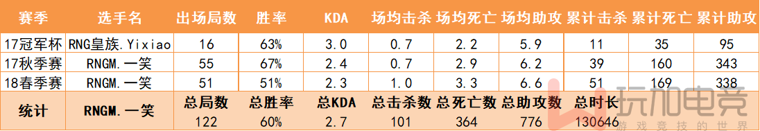 两个赛季来,一笑共出场122局,胜率达到60%。