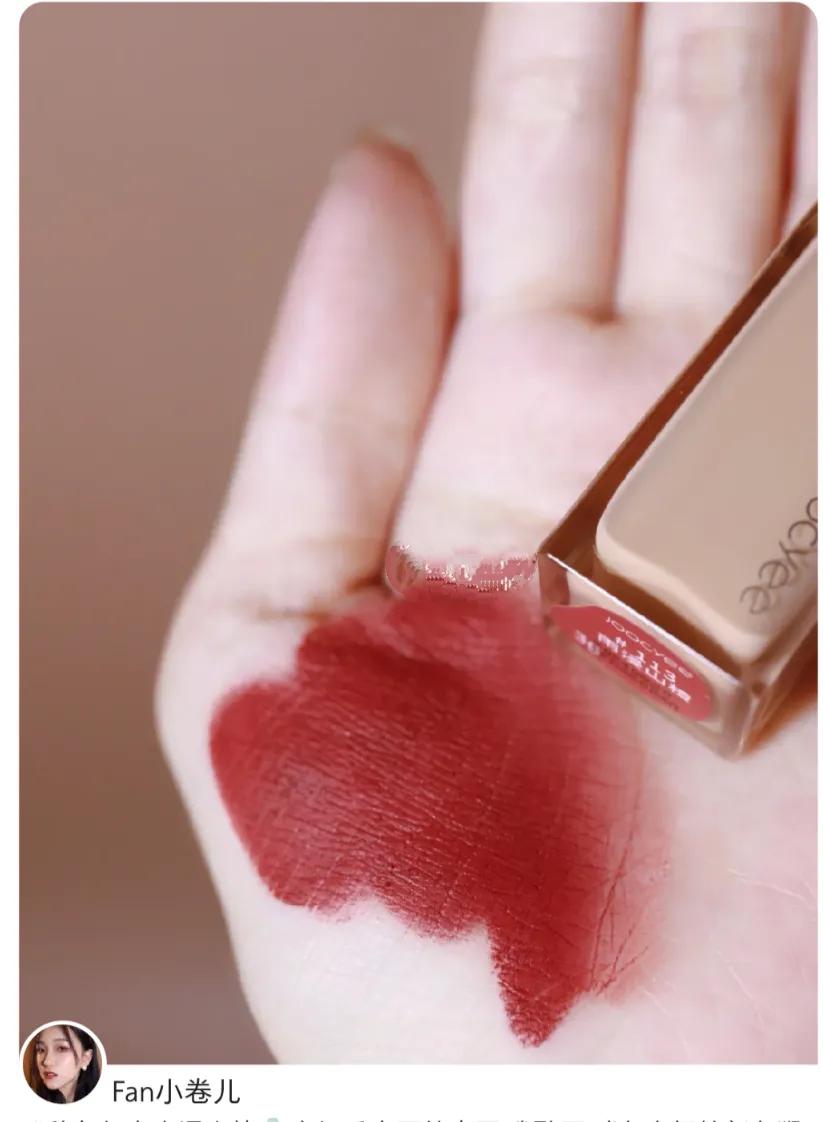 超级浓郁的复古红棕色,棕色调刚刚好,上唇一点都不深,特别显白,非常适合黄黑皮女生。